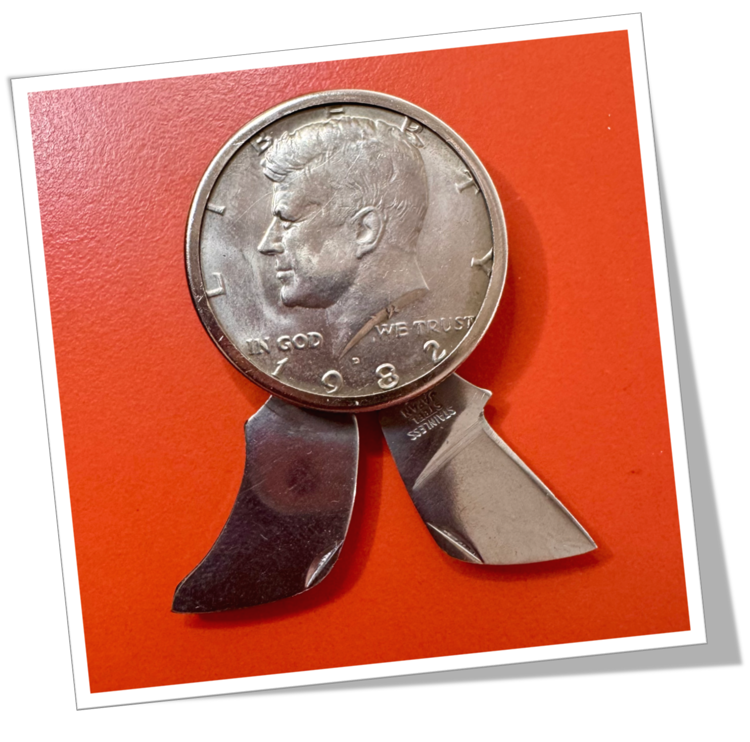 Coin-Knife (onglier) Pièce en argent 900, sertie. JFK half dollar, USA 1982.2pcs: Lame et lime crochet