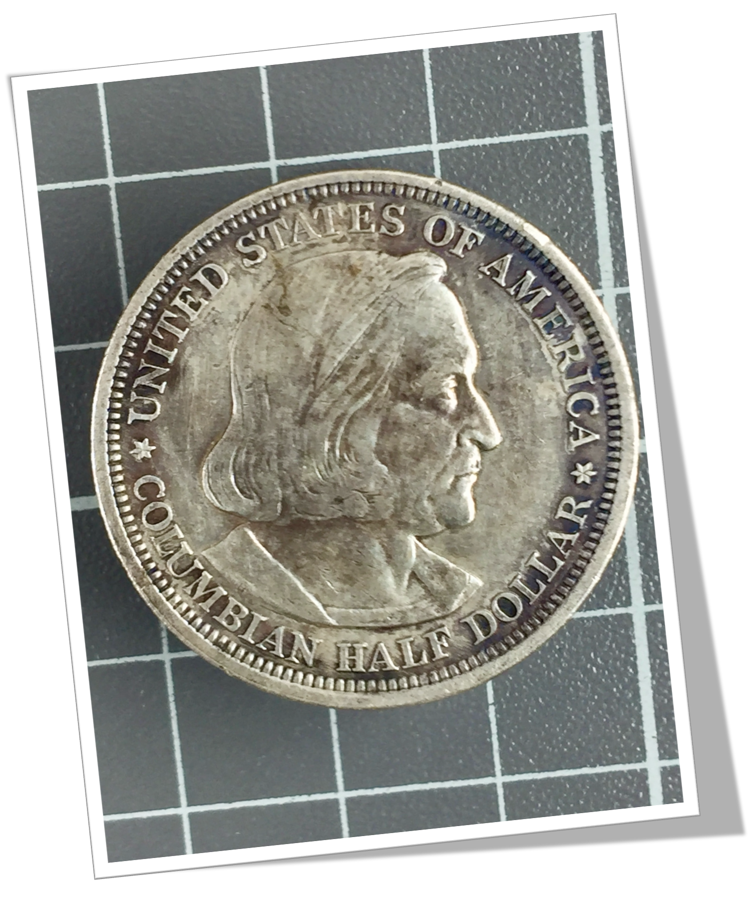 En argent 925, agrémentée de deux pièces en argent appliquées. Tranche lisse. Columbian Expo half dollar 1892 USA.