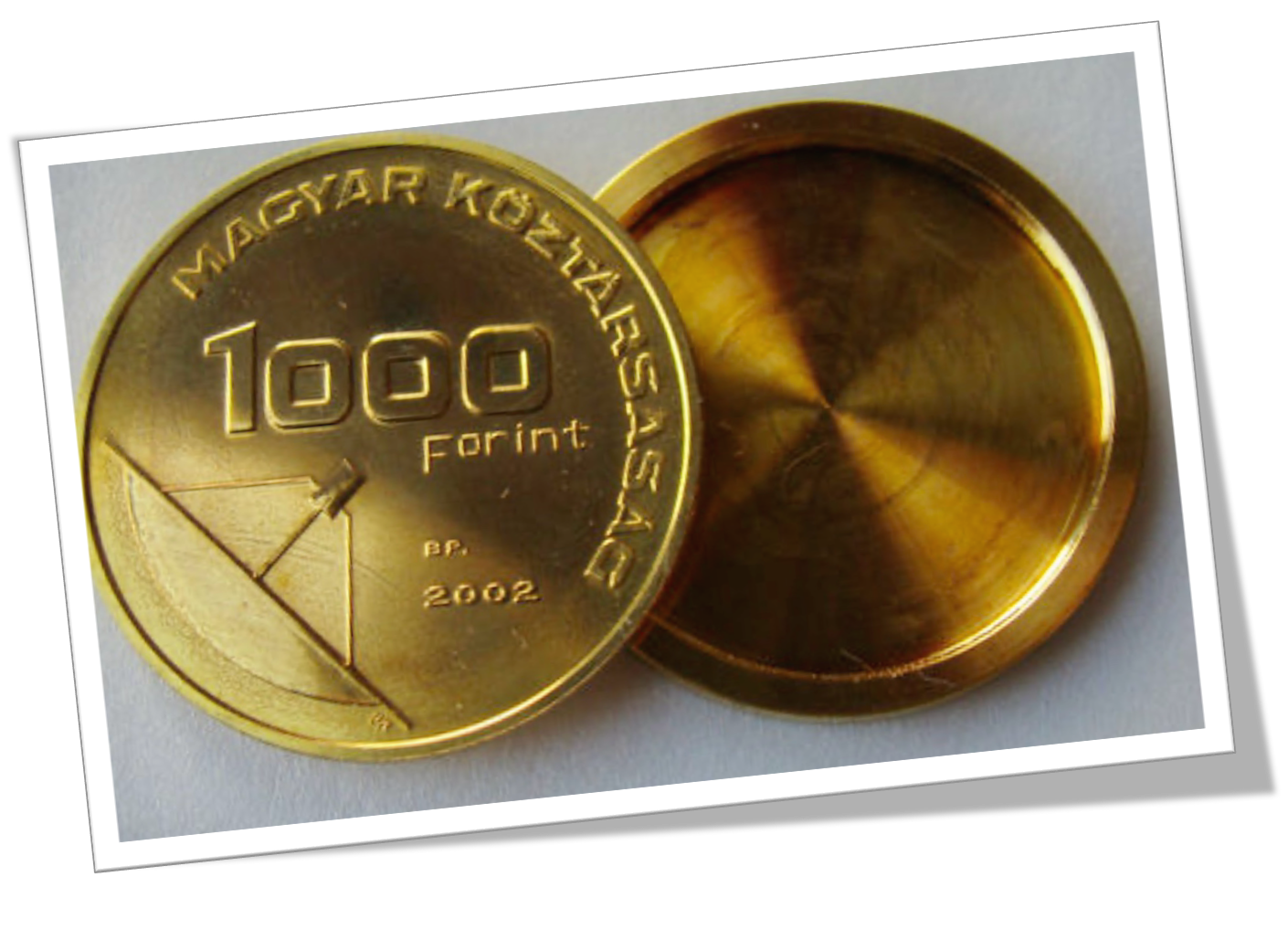 Pièce en alliage de laiton, tranchée et vidée. 1000 Forint, Hongrie 2002.