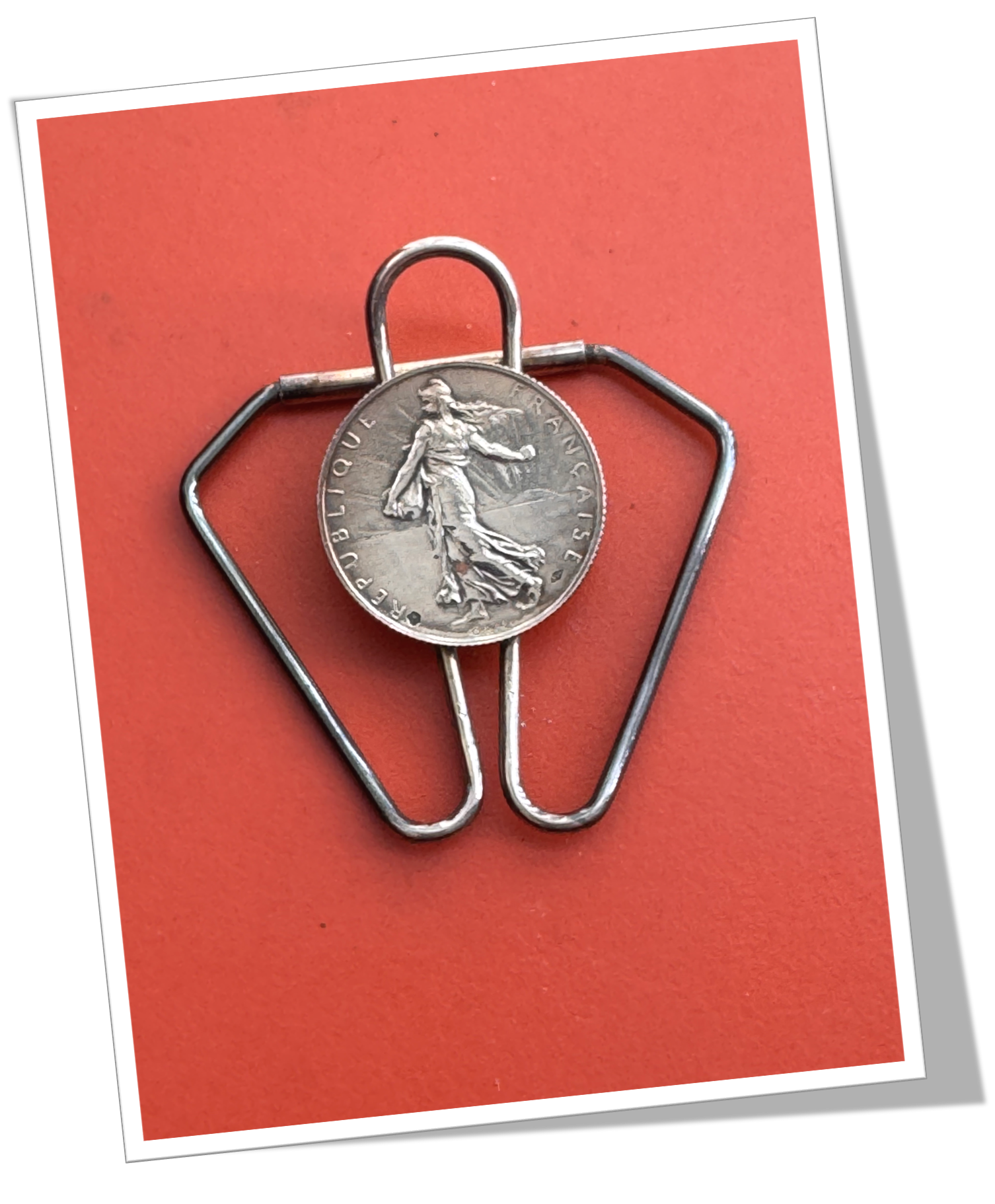 Divers Pièce en argent 900, Semeuse 2 Frs. 1916, France.Pince en acier chromé.