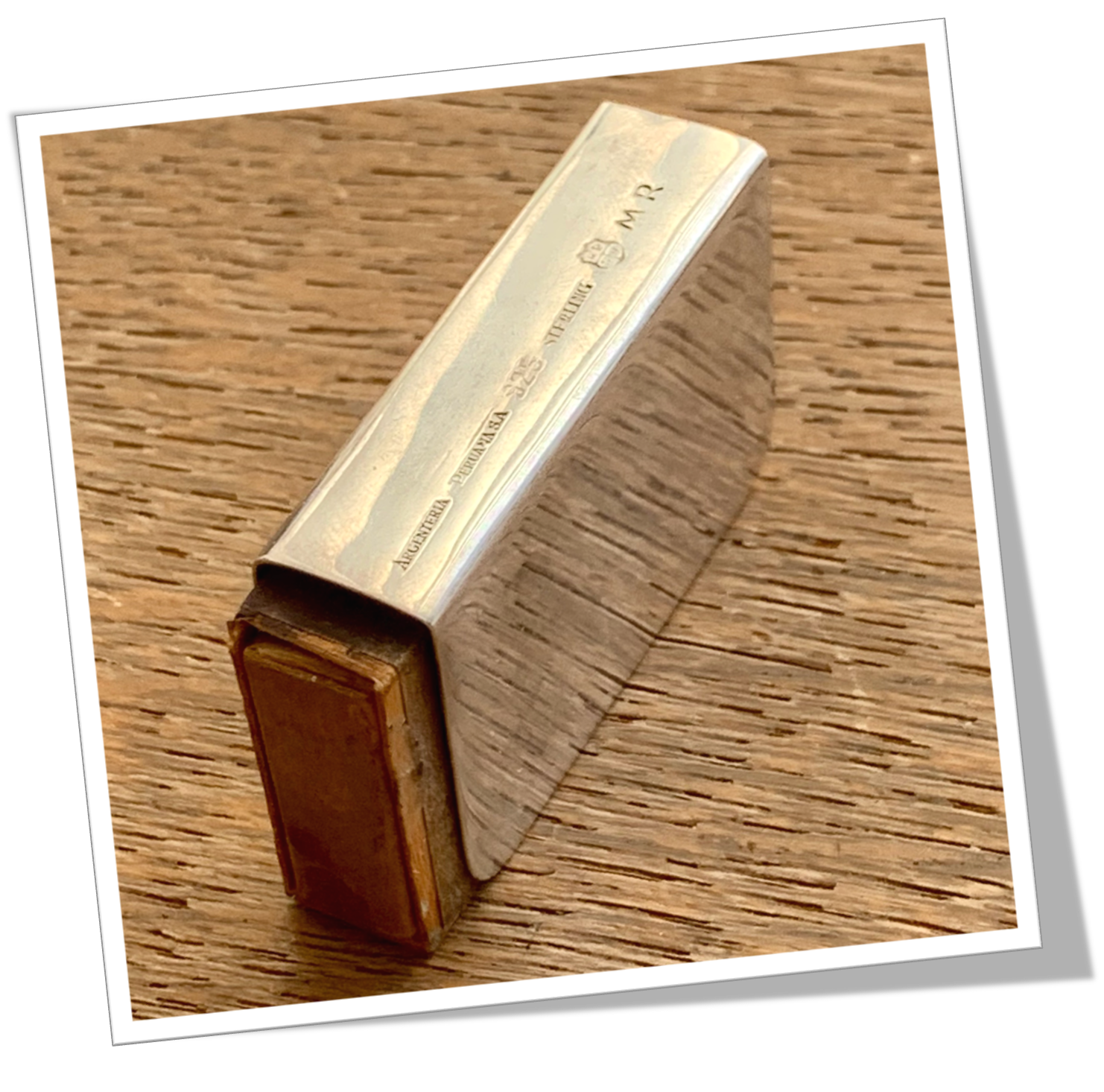 Étui à boîte d’allumettes En argent 925 et de forme rectangulaire à angles arrondis. Lisse poli miroir. 15g.Reliure.