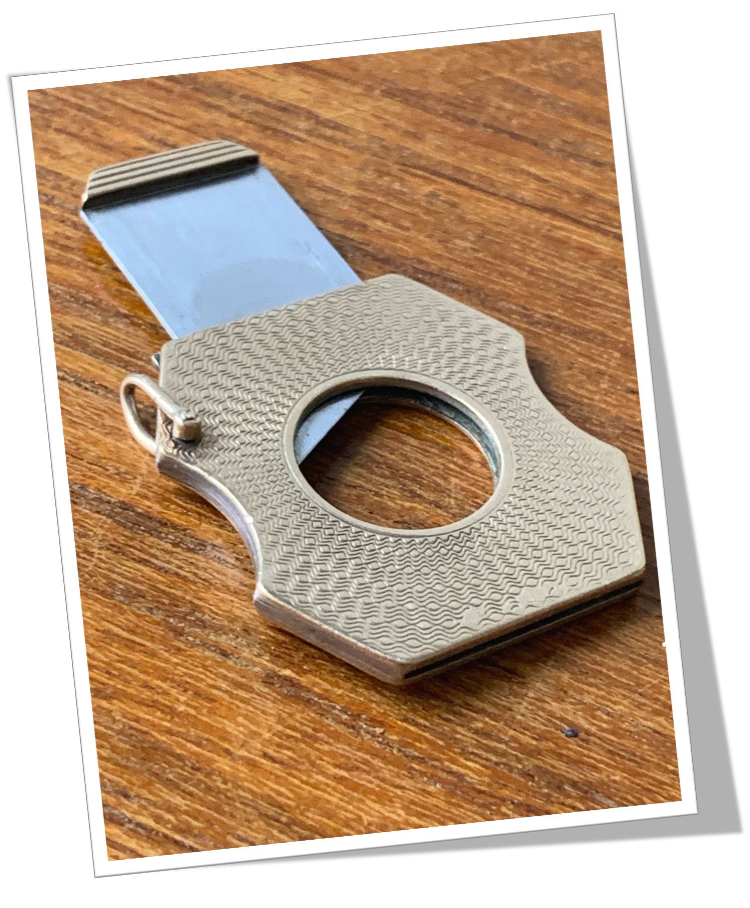 Coupe-Cigare de poche Côtes polygonales appliquées en or 9ct, rehaussées d’un guillochis «cinétique ».Guillotine à collerette. Bélière latérale.