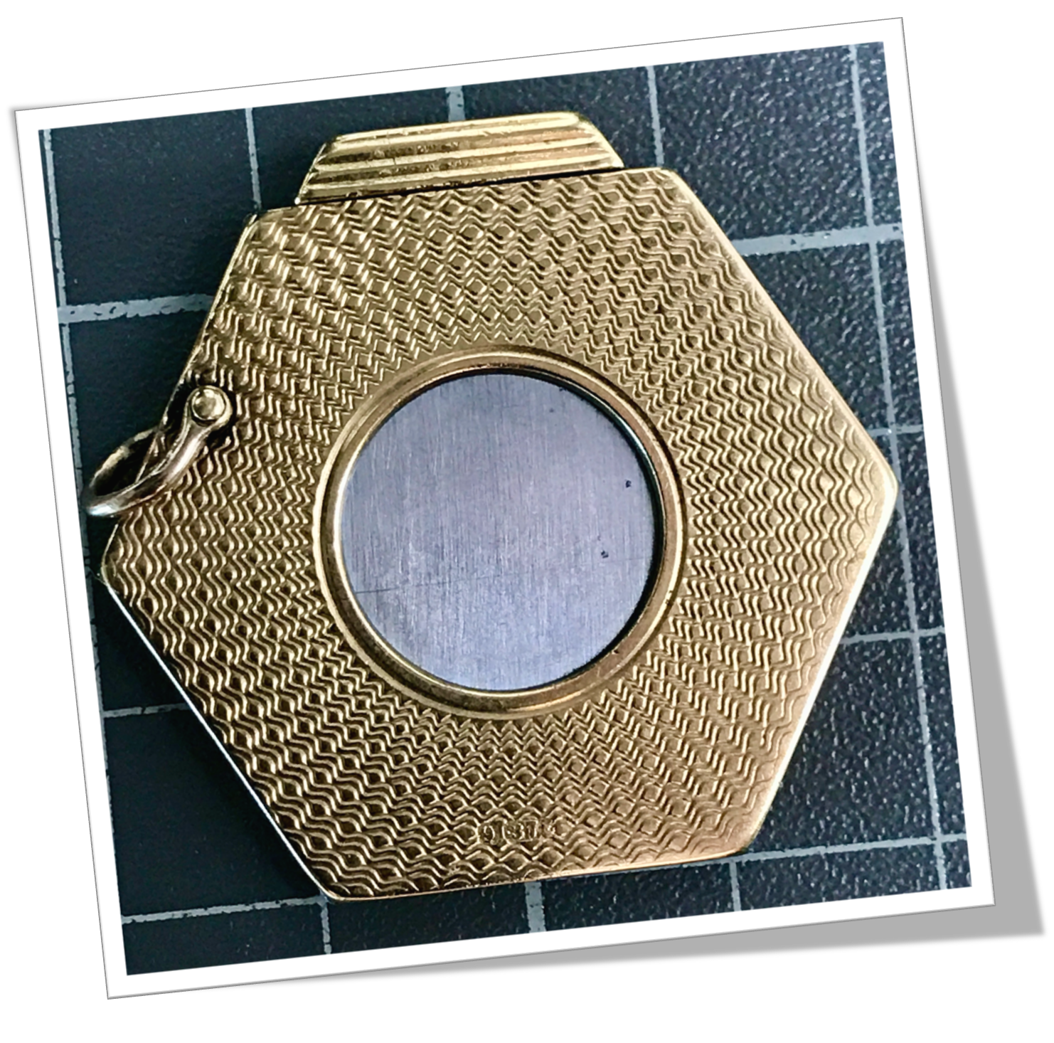 Côtes hexagonales appliquées en or 9ct, rehaussées d’un guillochis « cinétique circulaire ».