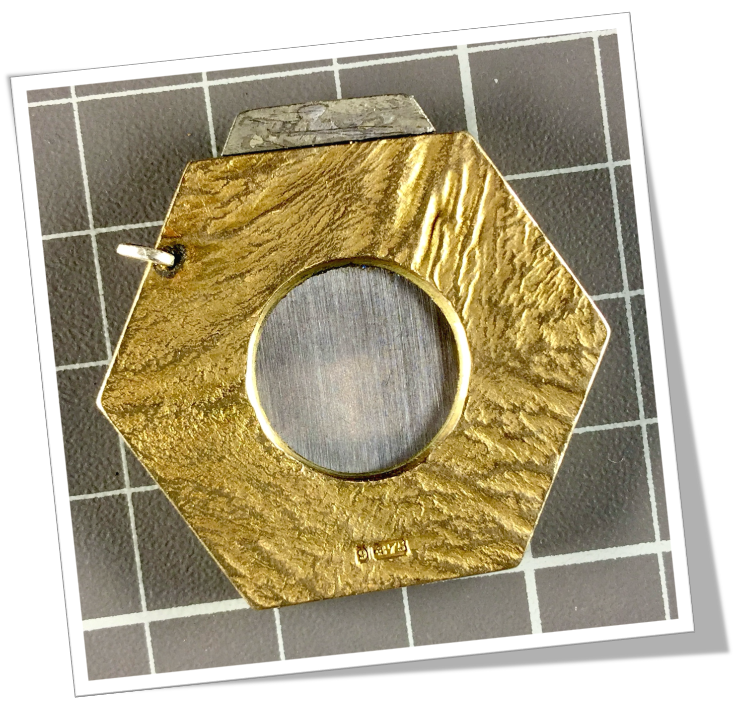 Côtes hexagonales appliquées en or 9ct, rehaussées d’un guillochis « Nuggets coulée de lave ».