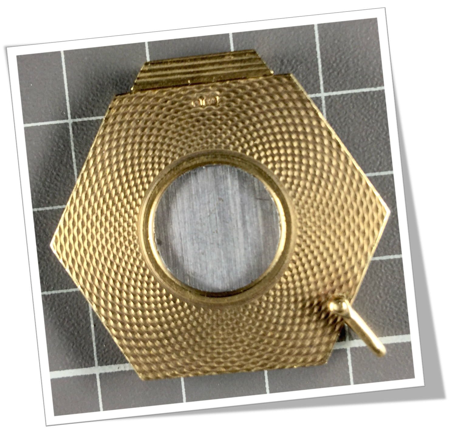 Côtes hexagonales appliquées en or 9ct, rehaussées d’un guillochis « jaillissant ».
