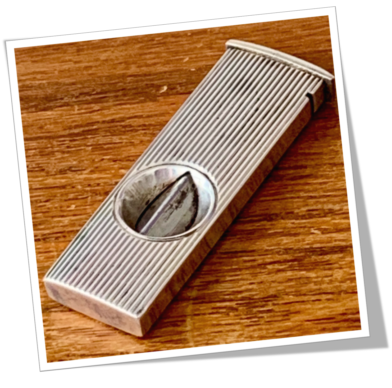 Coupe-Cigare de poche En argent 925 et de forme rectangulaire. Faces rehaussées d’un guillochis « godronné ».Cat-Eye (V-Cat) à collerette.