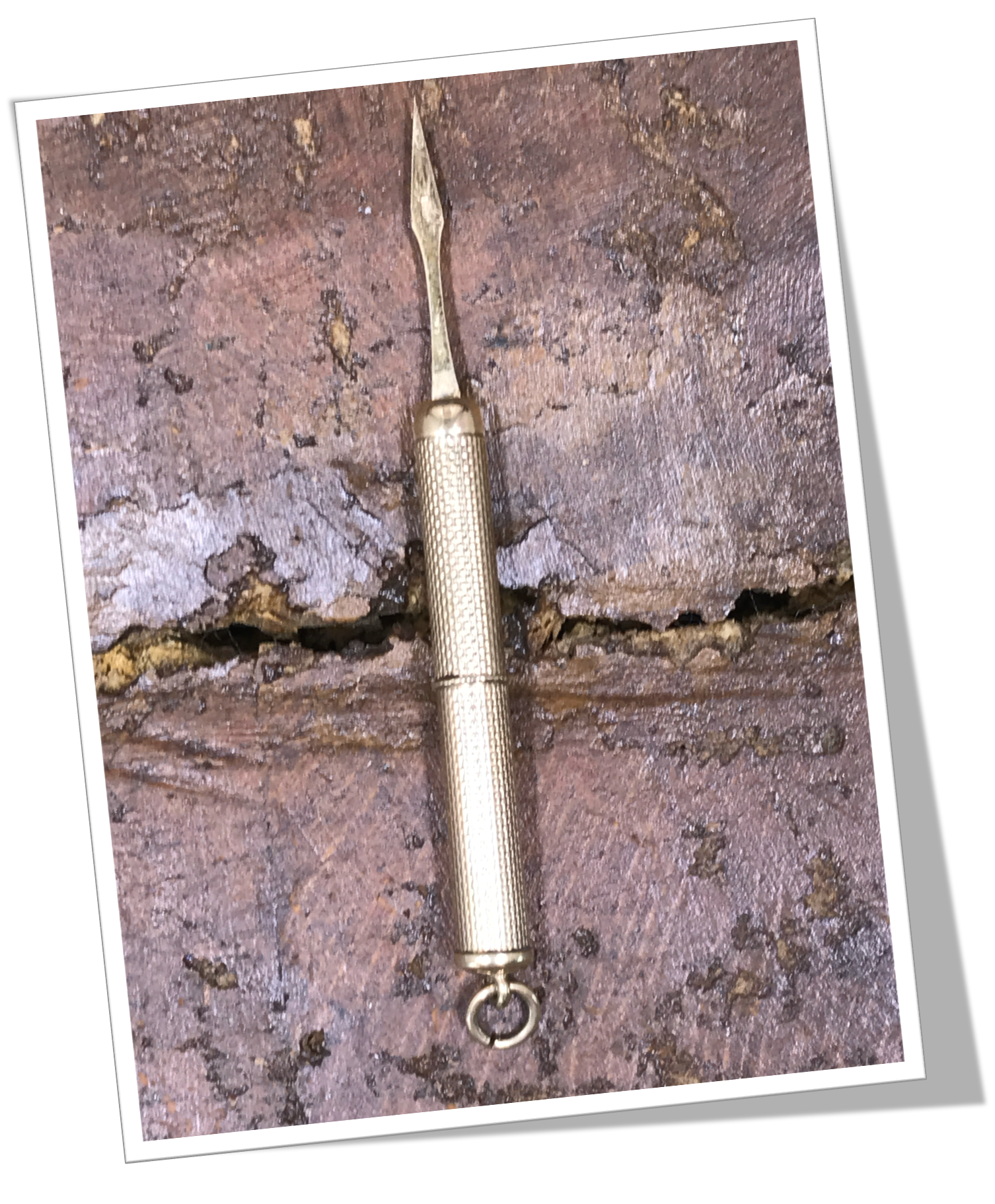 Cure-dents En or 9ct et en forme de « stylo ». Rehaussé d’un guillochis « linéaire ».Pique lance rotatif. Bélière.