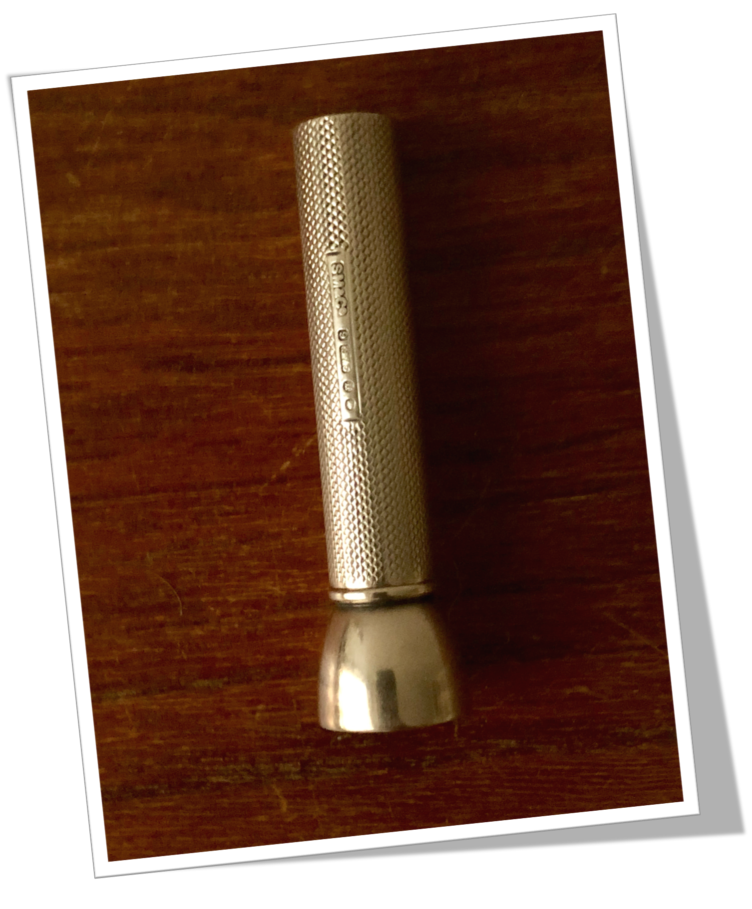 En or 9ct et en forme de trompe, rehaussé d’un guillochis « strié fin » et « linéaire » sur le fourreau.